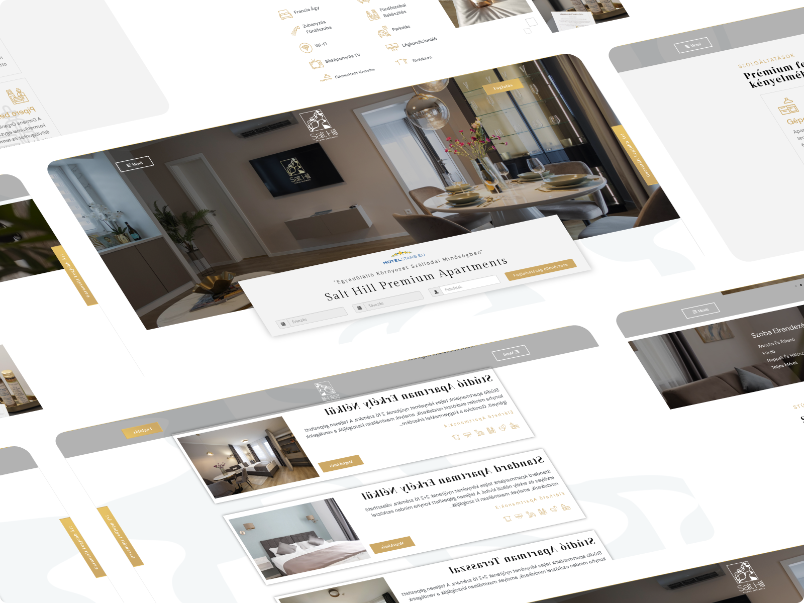 A Salt Hill Apartmanok Egerszalókon, Eger szomszédságában található, exkluzív szálláshely, amely 49 prémium apartmannal várja vendégeit. Megbízásukkal céljuk az volt, hogy olyan hotel szintű weboldalt hozzunk létre számukra, amely méltón tükrözi az apartmanok minőségét, és hatékonyan támogatja a foglalási folyamatokat, mindezt több nyelven, külföldi vendégek számára is érthető, informatív módon.
